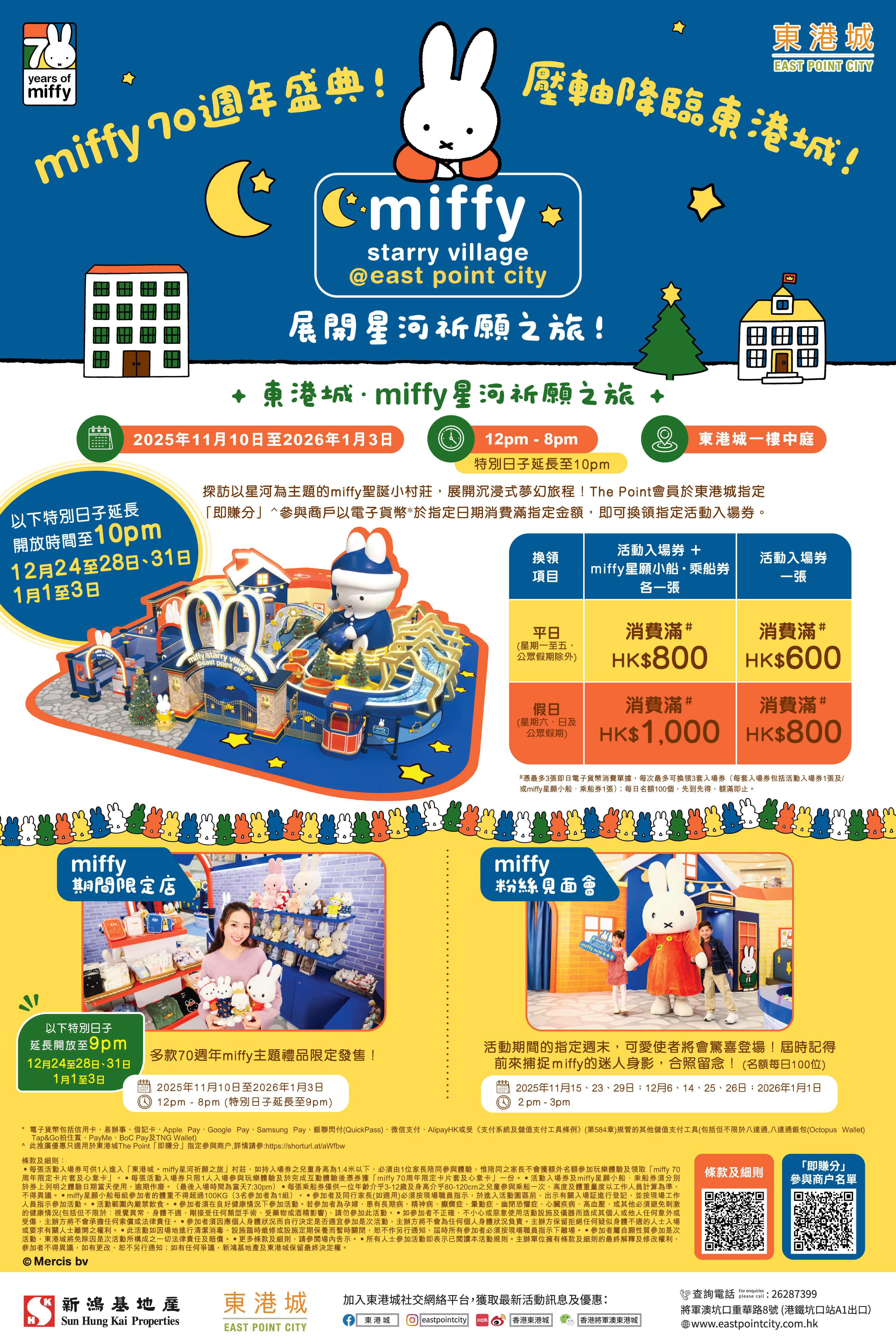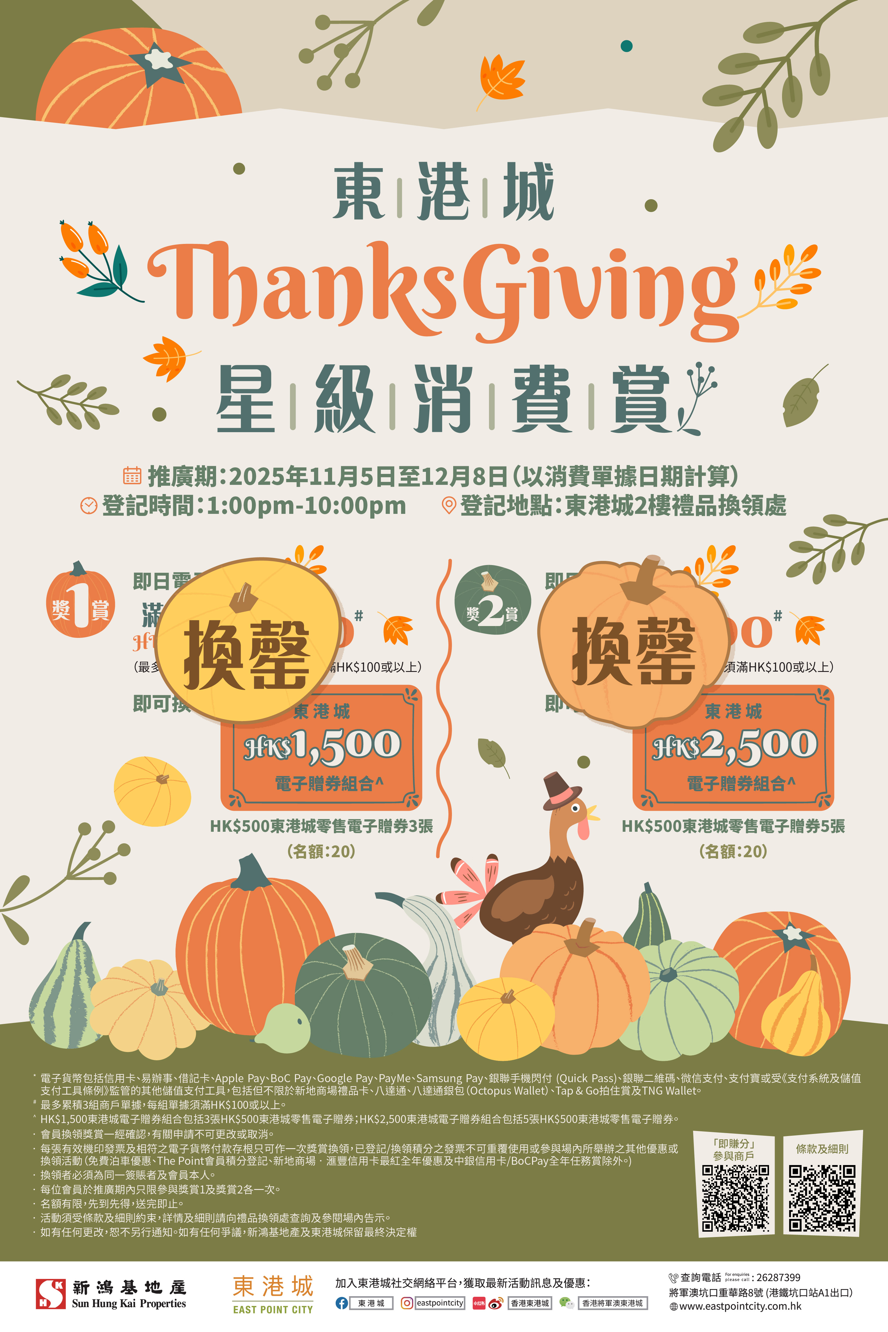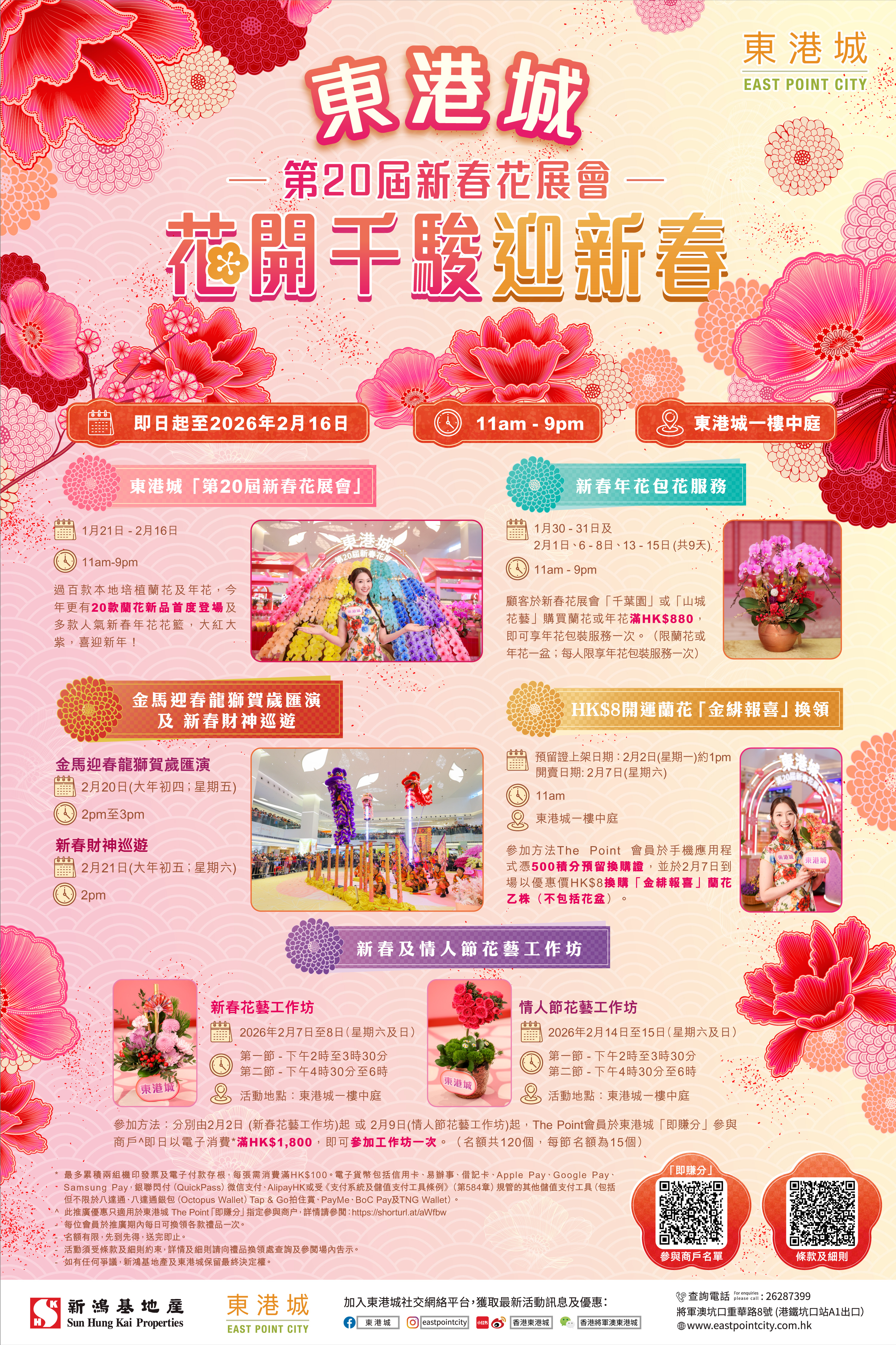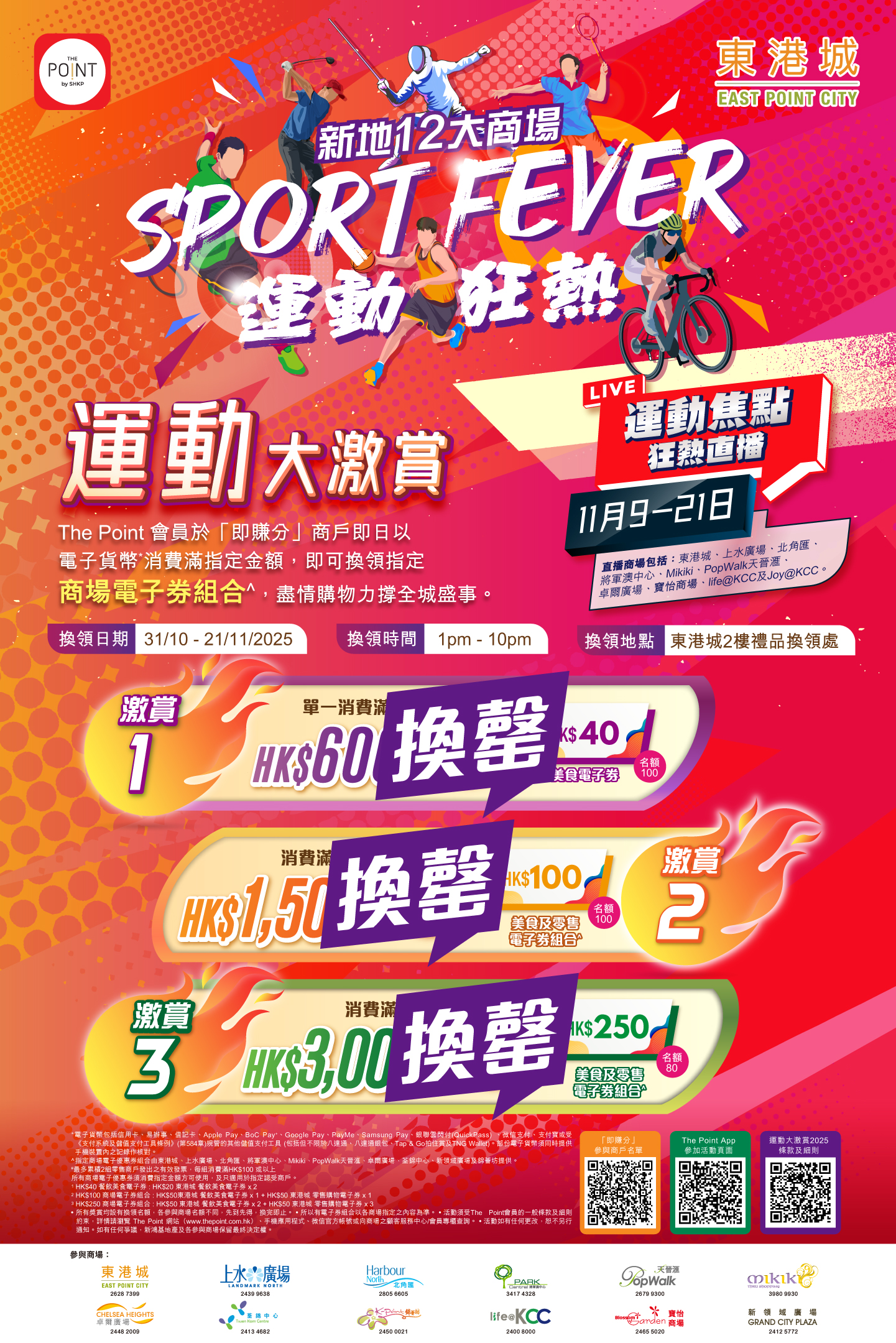 最新活動 昔日活動 活動年份 所有年份 所有年份 迎春年貨購物賞 2026年2月2日 - 2026年3月3日 東港城情人節禮品換領 2026年1月30日 - 2026年2月14日 免觸式自動起閘離場及 The Point會員自助辦理泊車優惠服務暫停 2026年1月28日 - 2026年1月30日 東港城第20屆新春花展會「花開千駿迎新春」 2026年1月23日 - 2026年2月16日 東港城新春獻禮 – 賀年禮品換領 2026年1月21日 - 2026年2月16日 東港城第20屆新春花展會「花開富貴迎駿馬」揭幕禮 2026年1月16日 - 2026年1月20日 新地商場.東亞銀行卡簽賬獎賞 2026年1月15日 - 2026年2月28日 滙豐信用卡最紅全年優惠 (2026年度) 2026年1月1日 - 2026年12月31日 「中銀信用卡全年任務賞2026」 2026年1月1日 - 2026年12月31日 東港城美食超市消費賞 (30/12) 2025年12月30日 - 2025年12月30日 東港城 – 「千格玲瓏」利是封換領 2026年1月16日 - 2026年2月16日 東港城新春駿樂園 feat. LeonLollipop 2026年1月10日 - 2026年3月3日 《全民造星VI》11強記者會 2025年12月15日 - 2025年12月27日 東港城 – 躍動時尚賞 2.0 2025年12月4日 - 2025年12月22日 冬日至尊Phone狂賞 2025年12月9日 - 2026年1月4日 銀聯卡 • 新地商場賞您冬日好禮 2025年12月1日 - 2026年1月31日 WeWa / EarnMORE銀聯卡專享禮遇 2025年12月1日 - 2026年1月31日 東港城 寵物到訪守則 2025年11月28日 - 2026年12月31日 東港城美食超市消費賞 2025年11月22日 - 2025年12月29日 東港城 – 躍動時尚賞 2025年11月10日 - 2025年11月23日 東港城.miffy星河祈願之旅 2025年11月10日 - 2026年1月3日 Thanksgiving 星級消費賞 2025年11月5日 - 2025年12月8日 東港城 – SPORT FEVER 運動狂熱《運動大激賞》 2025年10月31日 - 2025年11月21日 東港城星河祈願之旅揭幕禮 2025年10月23日 - 2025年11月9日 東港城《金式森林》記者會 2025年10月3日 - 2025年10月3日 萬聖節聯歡戶商户優惠 2025年10月24日 - 2025年11月24日 《東港城 萬聖魅影派對》 2025年10月10日 - 2025年10月24日 東港城 10.1 國慶有禮 2025年9月25日 - 2025年10月1日 新地商場 • 中銀信用卡簽賬獎賞 2025年9月15日 - 2025年11月30日 美食超市消費賞 2025年9月10日 - 2025年10月26日 東港城 X 《我愛九龍城》記者會 2025年8月29日 - 2025年9月7日 Gadget Lovers 最高消費賞 2025年9月1日 - 2025年10月31日 東港城中秋節主題禮品換領 2025年9月5日 - 2025年10月6日 夏日最高消費賞 2025年8月1日 - 2025年8月31日 東港城 X 中三夏日感謝祭記者會 2025年7月21日 - 2025年8月1日 The Point x VISA消費雙重賞 2025年6月24日 - 2025年8月31日 東港城 x Rock My Soul 2025年7月17日 - 2025年8月2日 新地商場禮品卡流動支付額外賞 2025年7月2日 - 2025年12月31日 滙豐信用卡暑假賺分攻略 2025年7月1日 - 2025年9月14日 新地商場 • 滙豐信用卡最紅大折日2025 2025年7月1日 - 2025年9月14日 東港城 X BANGGRI 烘焙夢工場 2025年7月5日 - 2025年8月20日 東港城7.1慶回歸優惠合集 2025年6月23日 - 2025年7月31日 盛夏時尚狂熱賞 2025年6月25日 - 2025年8月31日 東港城 x 張與辰《深海》新歌發佈會 2025年6月19日 - 2025年7月5日 東港城《刑偵12》記者會 2025年6月10日 - 2025年6月10日 初夏最高消費賞 2025年6月2日 - 2025年7月15日 東港城美食超市日日賞 2025年6月2日 - 2025年8月17日 全民造星VI記者會-入場證換領 2025年5月21日 - 2025年5月31日 西貢一日遊 優惠指南 2025年5月22日 - 2025年6月21日 東港城 父親節禮品換領 2025年6月2日 - 2025年6月15日 東亞銀行信用卡客戶專享 2025年5月16日 東港城端午節獻禮 2025年5月9日 - 2025年5月31日 東港城寢夢春日賞 2025年4月22日 - 2025年8月25日 【東港城 x 將軍澳中心 x PopWalk 天晉滙】將軍澳泊車賞 2025年5月1日 - 2025年7月31日 東港城 母親節獻禮 2025年4月29日 - 2025年5月11日 東港城 黃金Phone狂賞 2025年4月23日 - 2025年6月1日 東港城時裝及運動服飾電子贈券之認受商家名單 2022年4月1日 - 2030年12月31日 新地商場 • 新地會星級會員泊車優惠 2025年1月1日 - 2025年12月31日 東港城 x 《中年好聲音3》十強見面會 2025年4月4日 - 2025年4月18日 東港城 x GIN LEE 李幸倪簽唱會 2025年3月7日 - 2025年3月9日 新地商場 • 渣打信用卡 2025年3月1日 - 2025年5月15日 新地商場禮品卡 ● WeWa/EarnMORE信用卡限時優惠 2025年3月4日 - 2025年3月31日 東港城 春日最高消費賞 2025年2月24日 - 2025年4月22日 電車充電購物激賞 2025年2月14日 - 2026年12月31日 東港城 – 春日美食超市消費賞 2025年2月24日 - 2025年3月31日 【東港城 x 將軍澳中心 x PopWalk 天晉滙】將軍澳泊車賞 2025年2月15日 - 2025年3月31日 東港城 x TMG周吉佩及吳業坤新歌發佈會 2025年2月18日 - 2025年3月1日 東港城 – Welcome旅客Double 賞 2025年11月28日 - 2025年6月30日 東港城 – 情人節花之浪漫樂章 2025年2月8日 - 2025年2月14日 招商銀行信用卡專享 2025年1月23日 - 2025年3月26日 東港城 – 情人節獻禮 2025年2月1日 - 2025年2月14日 東港城「花語心願」新春佈置 2025年1月8日 - 2025年2月23日 東港城新春賀禮賞 2025年1月6日 - 2025年2月23日 新地商場 • 中銀信用卡 全年任務賞 2025 2025年1月3日 - 2025年12月31日 東港城 「雍容華貴 矜貴閃爍」利是封 2025年1月8日 - 2025年1月28日 新地商場 • 匯豐信用卡最紅全年優惠 2025 2025年1月1日 - 2025年12月31日 東港城 – 新春獻禮 2025年1月10日 - 2025年1月28日 新地商場 ‧ 恒生信用卡玩轉個獎賞 2025年1月2日 - 2025年2月28日 東港城 新春最高消費賞 2025年1月2日 - 2025年2月24日 東港城 New Year’s Rhythm 2024